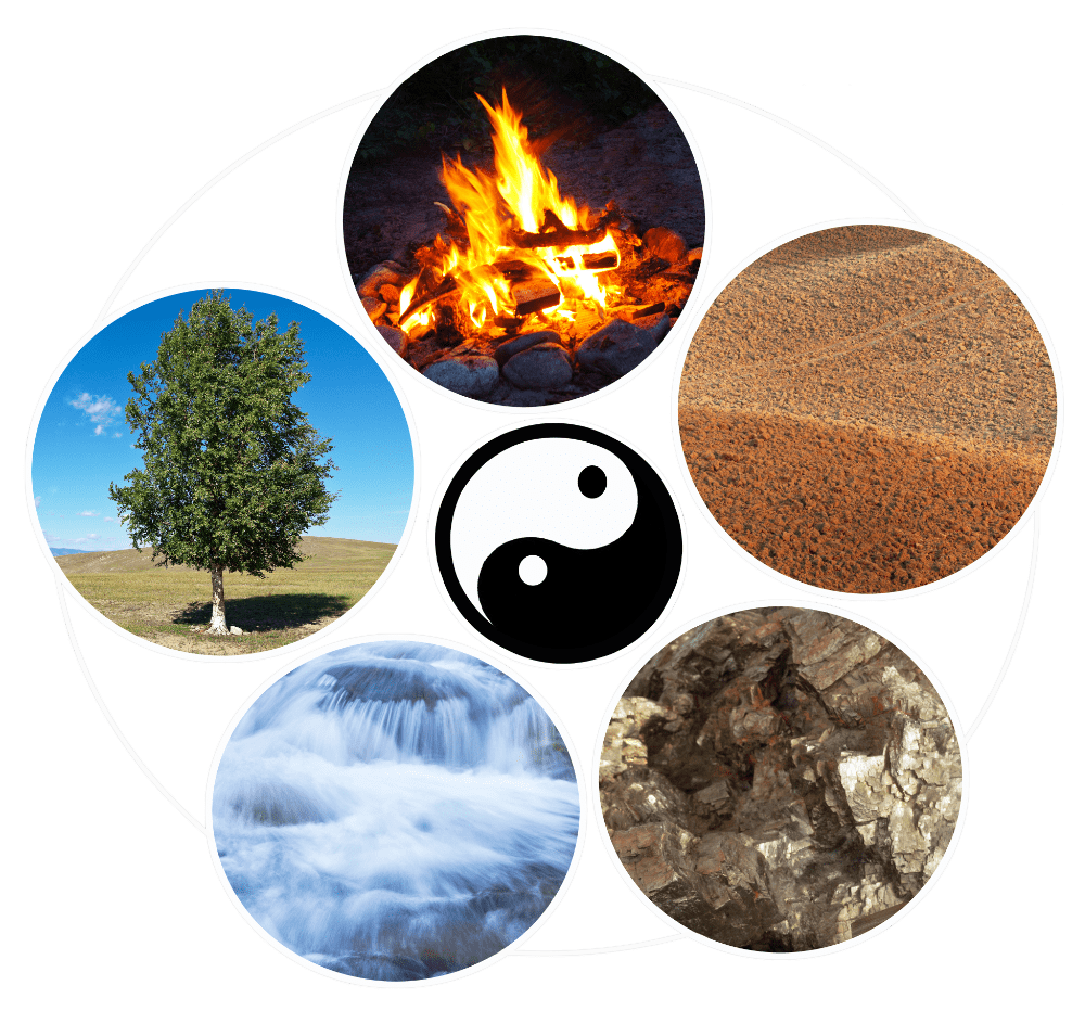 Die Lehre von den Fünf Elementen, Holz-Feuer-Erde-Metall-Wasser, entstand ebenso wie die Lehre von Yin und Yang aus der Beobachtung der Natur und ihrer Rhythmen.